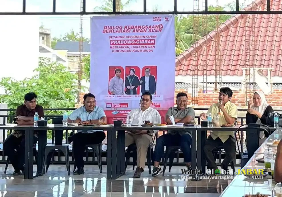 wartaglobaljabar.id - Aliansi Mahasiswa Nusantara (AMAN) menggelar Deklarasi dan Dialog Kebangsaan dengan tema “Menyambut Satu Tahun Pemerintahan Prabowo–Gibran, Kebijakan, Harapan, dan Dukungan Kaum Muda” pada Senin, 27 Oktober 2025, di Cafe Collesium Pango Raya, Banda Aceh, 27 Oktober 2025
