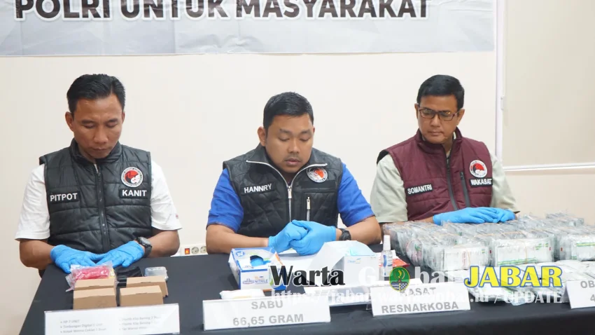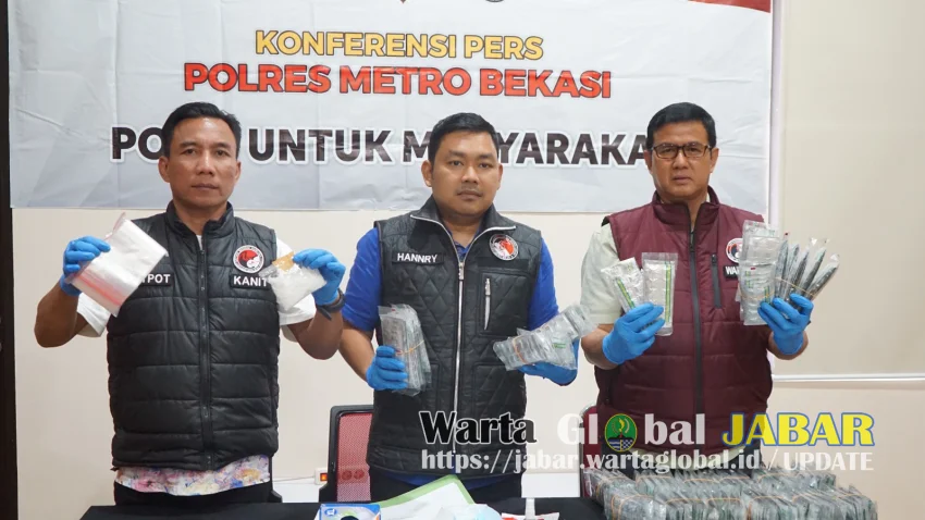 Bekasi, WartaGlobal.id – Satuan Reserse Narkoba (Satresnarkoba) Polres Metro Bekasi berhasil mengungkap peredaran narkotika dan obat terlarang di wilayah Kabupaten dan Kota Bekasi. Selama periode September 2025, polisi meringkus lima tersangka dan menyita barang bukti berupa sabu seberat 66,65 gram serta 45.950 butir obat daftar G.