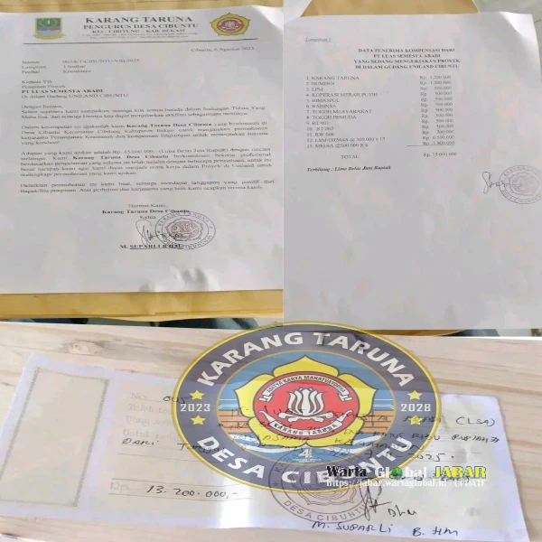 Bekasi, WartaGlobal.id - Baru baru ini dikejutkan beredarnya surat dari KARTAR (Karang Taruna) Desa Cibuntu Kecamatan Cibitung Kabupaten Bekasi Jawa Barat, yang di tunjukkan untuk PT LUAS SEMESTA ABADI yang diduga sedang mengerjakan proyek di PT UNILAND yang beralamat di Desa Cibuntu Kecamatan Cibitung.