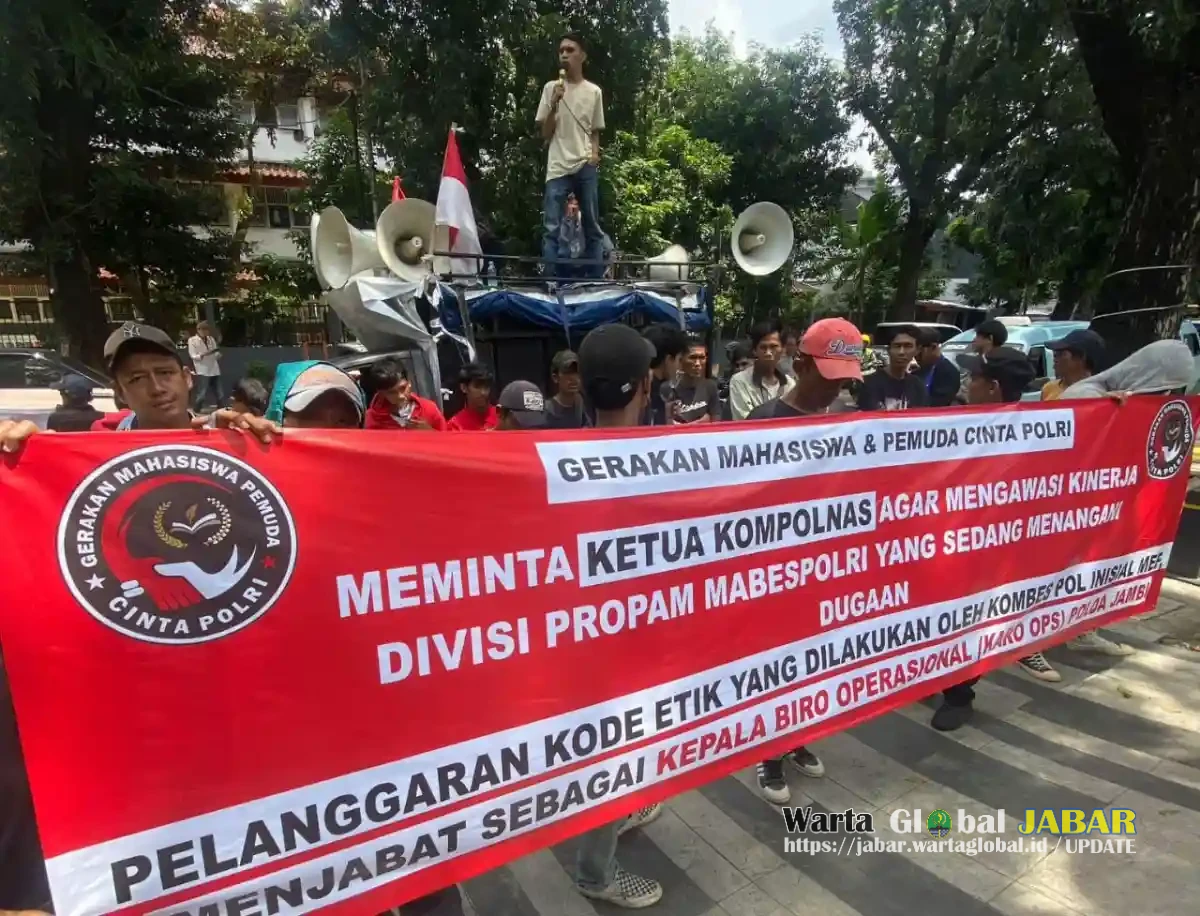 wartaglobaljabar.id — Dugaan skandal hubungan terlarang yang melibatkan oknum Pejabat Utama (PJU) Polda Jambi dengan seorang Polwan kembali disuarakan secara terbuka. Gerakan Mahasiswa dan Pemuda Cinta Polri (GMPC) menggelar aksi unjuk rasa di depan kantor Komisi Kepolisian Nasional (Kompolnas) RI, Jakarta, Senin (1/12/2025).