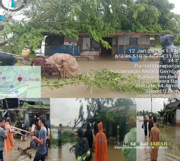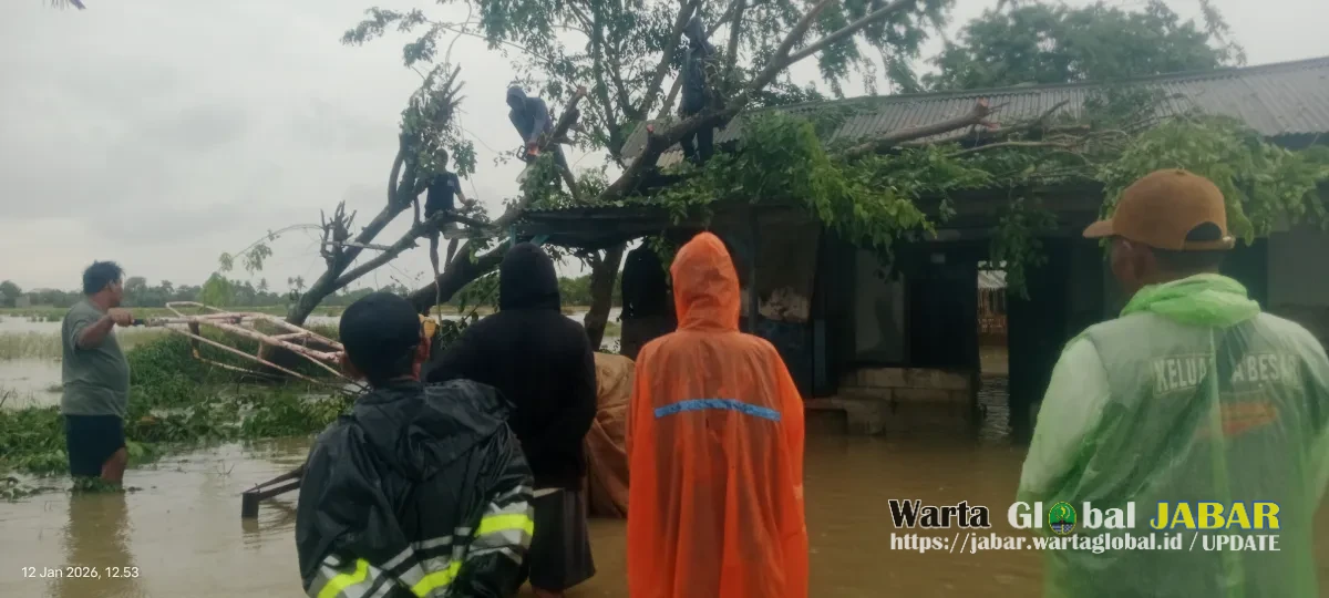 Dalam beberapa hari ini cuaca extrem terjadi di sejumlah wilayah di Kabupaten Bekasi, akibat Hujan deras dan Angin kencang, salah satu Warga Desa Pantai Harapanjaya, Rumahnya tertimpa pohon, ironisnya kejadian ini terjadi saat kondisi banjir.
