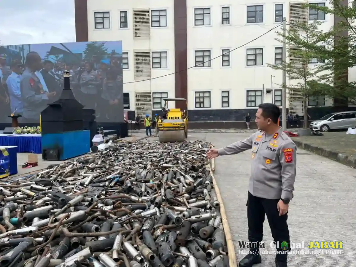 Bertempat di Lapangan Apel Ditkrimum Polda Jabar, Rabu, 18 Februari 2026 yang dilaksanakan kegiatan pemusnahan barang bukti narkoba, knalpot brong, serta penyerahan pinjam pakai barang bukti kendaraan bermotor (ranmor).